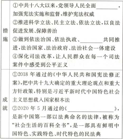 (4)意义:推动我国社会主义制度不断自我完善和发展,为实现中华民族伟大复兴奠定了坚实的法制基础。