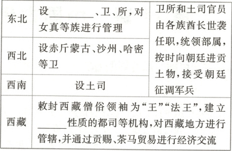 、卫、所,对女真等族进行管理卫所和土司官员由各族酋长世袭任职,统领部属,按时向朝廷进贡土物,接受朝廷征调军兵西北设赤斤蒙古、沙州、哈密等卫