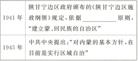 原则,“建立蒙、回民族的自治区” 1945年 中共中央提出:“对内蒙的基本方针,在目前是实行区域自治”