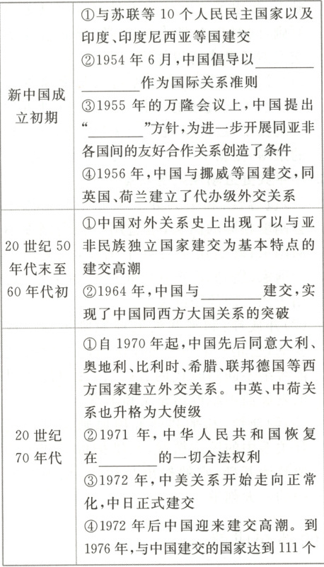 (1)另起炉灶 3.和平共处五项原则 求同存异 法国 联合国