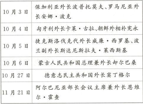 提示:外交状况:迎来第一次建交高潮(或答“与社会主义国家纷纷建交”)。表现:“一边倒”“打扫干净屋子再请客”“另起炉灶”。作用:为国家建设争取到有利的国际环境。
