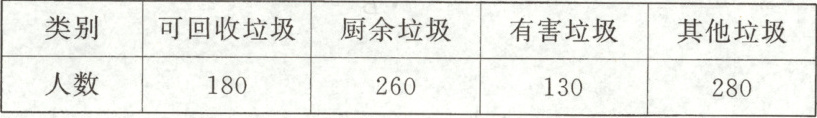 6.垃圾分类是目前人们比较关注的话题,为了解居民是否能够正确进行垃圾分类,幸福小区对部分居民进行调查。下面是能正确识别各类垃圾的居民人数统计表。(6分)