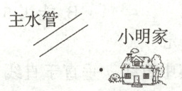 (在图上从小明家位置向主水管画一条垂直的线段,此处因无法直接画图,实际作答时需在给定图中完成该垂线段绘制)