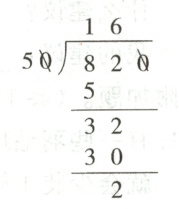 4. 王叔叔拿820元去买单价50元的钢笔,王叔叔计算的竖式如图,根据竖式,下面表述正确的是(