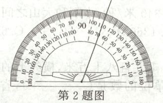 2. 利用上面的量角器画一个50°的角,其中顶点和一条边已经画好,请你画出它的另一条边。(2颗☆)
