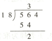 7. 阳光小学有564名学生,每18人组成一个环保小组,可以组成多少组?右图竖式中的“3”和“2”分别表示( )组,余( )人。