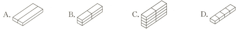 5.将四个完全一样的长方体盒子包成一包,长方体的长是 15 厘米,宽是 8 厘米,高是 1 厘米。下面四种包装中,(