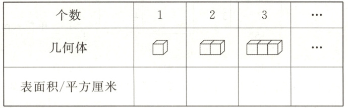 (1)请算出各组图形的表面积,填在下表中。