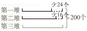 第三堆:(200 + 24 + 16)÷3 = 80(个)