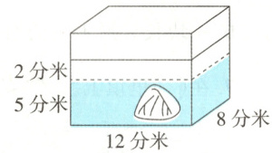 3.石块沉入前,玻璃鱼缸中水的高度是 5 分米,石块完全沉入水中,水面升高 2 分米,请你计算出这个石块的体积。(4 分)