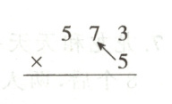 3. “徽章虽小,却情深似海”,为迎接建校100周年,学校拟赠送给全校573位同学每人一枚徽章,每枚徽章的价格是5元,求一共花费多少钱?君君用竖式进行计算(如图),其中“$5×7$”表示的是(