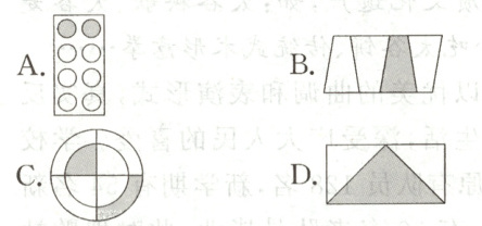 1. 下列涂色部分,不能用$\frac{1}{4}$表示的是(