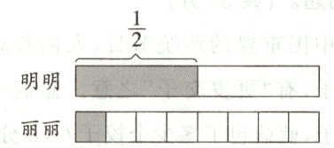 6. 明明和丽丽用同样的长方形纸条表示分数。明明表示的分数是$\frac{1}{2}$,丽丽表示的分数是(