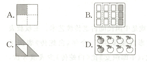 2. 下面各图中,涂色部分能用$\frac{3}{4}$表示的是(