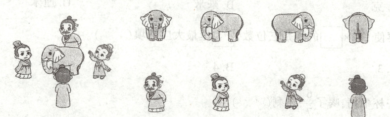 五、有一次,吴国孙权送给曹操一头大象,曹操十分高兴,带领群臣去看大象。曹操和几位大臣看到的分别是什么?连一连。(8分)
