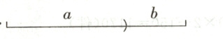 1. 如图,已知线段$a$、$b$。用圆规和无刻度的直尺作一条线段,使它的长度等于线段$a$,$b$的长度之和。(4分)