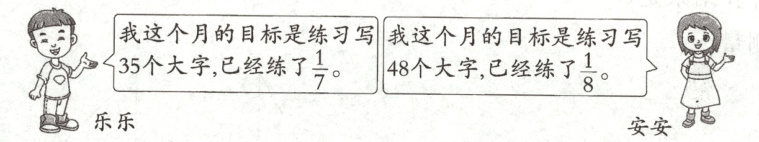 3.平平认为:因为$\frac{1}{7} > \frac{1}{8}$,所以乐乐已经练习的字数多。请你对平平的说法作出评价,并说明理由。(5分)