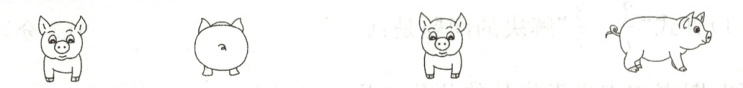 2. 观察小猪玩偶。从小猪的前面看到的填“前面”,从侧面看到的填“侧面”,从后面看到的填“后面”。
