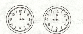 1. 下面两个钟面上时针和分针正好都成直角且时间恰好是整时,你知道这两个钟面上的时间分别是几时整吗?画一画。(4分)