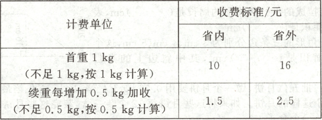 5. 某快递公司寄件收费标准如下表。