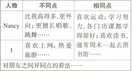 根据表格中提供的信息,写一篇不少于80词的短文介绍你和你最好的朋友 Nancy 的相同之处和不同之处。