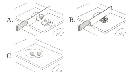 )2. What should you do right after the pineapple is cut into halves?A. Take the pineapple flesh out.