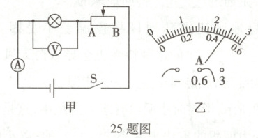 25. 在“测量小灯泡的电功率”实验中,小灯泡的额定电压为 3 V,电源是两节新的干电池。