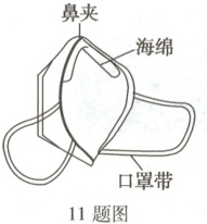 11. 如图为某款N95口罩的示意图,口罩的鼻夹与鼻梁接触处附有海绵,其目的是