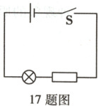 17. 如图所示,电源电压为3 V,小灯泡标有“2.5 V 0.2 A”字样。开关闭合时,小灯泡正常发光,求: