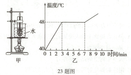 23. 图甲是“探究海波熔化时温度的变化规律”的实验装置。实验时将装有海波的试管放到水中加热,而不用酒精灯直接给试管加热,这样做既可以使海波受热