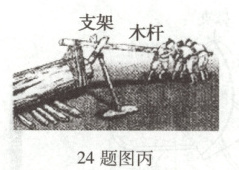 (3)人类很早以前就会使用杠杆了。图丙是我们的祖先在建造宫殿时利用木杆撬动沉重木料时的情景。由此过程可知,其中木杆属于