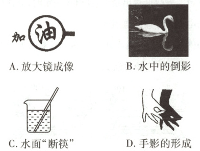 1. 如图所示,下列现象属于光的直线传播的是 (