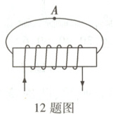 12. 如图所示,请标出通电螺线管的 N 极并在 A 点画出磁感线的方向。