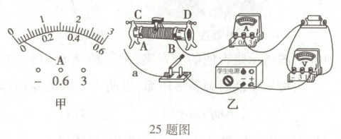 。(2)如图乙所示,导线$a$应与滑动变阻器的