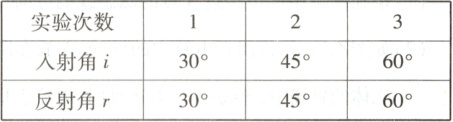 (2) 多次改变入射光的方向,用量角器测量入射角和反射角,记录在表格中,分析数据得出:在反射现象中,反射角