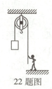 22.(8分)如图,某同学用一个定滑轮将质量10 kg的重物匀速向上提起9 m,其所做的总功为1000 J。g取10 N/kg。求该过程中: