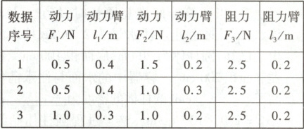 (9)该同学想起辘轳的大轮上不止一个手柄,两名同学可以一起提水,于是继续探究两个动力作用下杠杆的平衡条件。