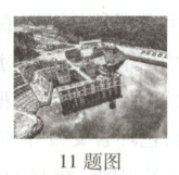 11. 如图所示,重庆蟠龙抽水蓄能电站于2024年全部投产,每年可减少二氧化碳排放39.87万吨。抽水蓄能电站的工作原理是在用电低谷时,将水从下水库抽到上水库储存,这是将电能转化为水的