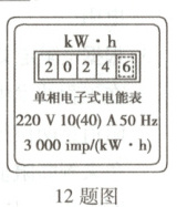 12. 如图所示,小欣同学家电能表4月底的示数是