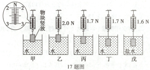 17. 小渝和同学们利用一长方体物块来探究影响浮力大小的因素。