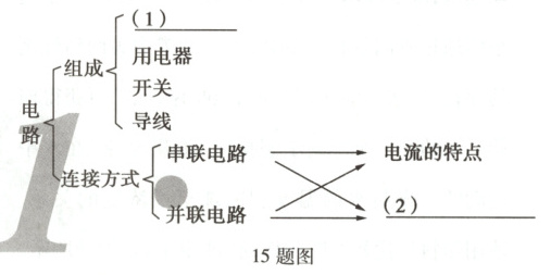 15. 某同学自主学习《电路初探》一章后,整理部分知识结构图如下,请补全有关内容。