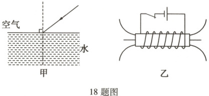 (1)如图甲所示,一束光从空气斜射向水面,请画出这条入射光线的折射光线。