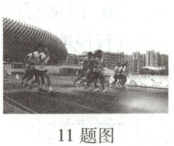 11. 如图所示,2024年广西“民族体育炫”板鞋竞速比赛中,运动员看到广告牌向后退,所选择的参照物是 ()