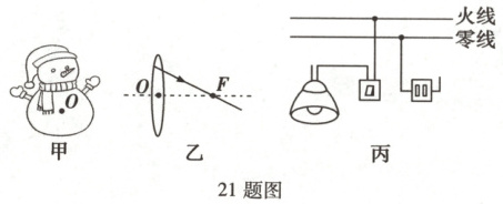 21. (1) 如图甲所示,O为雪人的重心,请画出雪人受到重力的示意图。