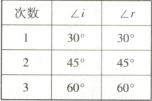 (2) 分析表中的实验数据可得:在反射现象中,反射角