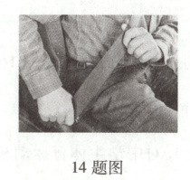 14. 如图所示,乘车时系住安全带,就系住了安全。紧急刹车时,人向前运动拉长安全带,此时人和安全带之间的能量是如何转化的?