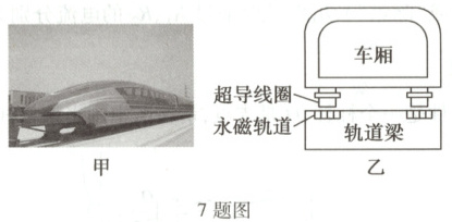 7.3 月 28 日,2025 中国科幻大会在北京举行,会上展示了我国低真空、磁悬浮高速列车,如图甲所示。请回答问题。