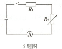 6.下图所示的是体育中考中测量肺活量的测试仪原理图,其中$R_1$为定值电阻,气体传感器$R_2$的电阻随气体压强的增大而减小,小吉吹的气越多,则 (
