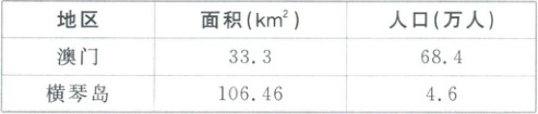 [广东潮州2024高一期末]广东省横琴岛位于澳门西侧,与澳门隔河相望。2024年3月1日,分线管理封关运行正式实施,推动琴澳一体化发展。下表为2023年两地面积、人口统计表。据此完成下面小题。
