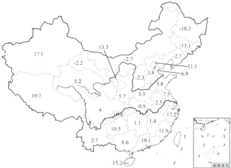 [北京大学附属中学2025高一期末]下图为2010—2020年我国各省级行政区人口增长率(‰)分布图(港澳台地区数据暂缺)。据此完成下面小题。